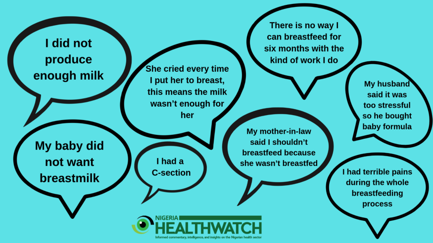 It seems a woman’s breastfeeding journey is sometimes inhibited at the health facility by the advice given to them by health workers. Martha, a 31-year-old first-time mother who gave birth to her baby in a public hospital shared how rough the journey was for her. She said she didn’t know how to breastfeed and nobody at the health facility told her what to do. She struggled till she got home and used her instincts and the internet to learn how to breastfeed. These are basic lessons that should be taught repeatedly at antenatal classes, culminating in the ultimate hands-on, one-on-one practical experience when a woman finally gives birth.