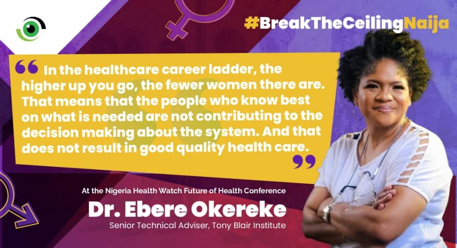 Dr. Ebere Okereke, Senior Technical Advisor, Tony Blair Institute echoed Dr Etiebet’s sentiments adding that despite the proliferation of women in the health workforce, the higher up you go, the fewer women there are. “That means that the people who know best what is needed are not contributing to the decision making about the system. And that does not result in good quality healthcare,” she said.