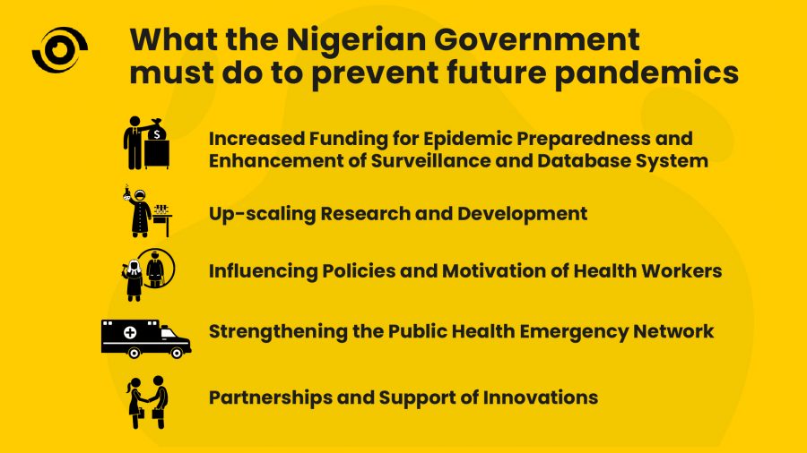 Strengthening the health system and increasing budgetary allocations for epidemic preparedness will improve detection, prevention, and response to infectious disease outbreaks in Nigeria.