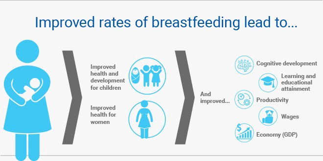 The benefits of exclusive breastfeeding cannot be overemphasized. Breastfeeding is about more than simply providing a child food; it helps ensure a child develops to full potential as an adult. Breastfeeding is central in giving children the right start to life during the 1,000-day window from a mother’s pregnancy to her child’s second birthday and remains pivotal in ensuring the good health of mothers and children. As a result, mothers and other caregivers require active support for establishing and sustaining appropriate breastfeeding practices. In addition, stricter regulations in the marketing of breastmilk substitutes is required to ensure that mothers are not misled into considering breastmilk substitutes as an alternative that can be used in place of breastmilk, before a baby reaches 6 months. Furthermore, the risk of illnesses like diarrhea is reduced where there is reliable access to clean water. The cost-effectiveness of breastfeeding is also an additional bonus. It is estimated that for every $1 invested in breastfeeding, there is a $35 economic return, a clear economic win for families in lower income countries.