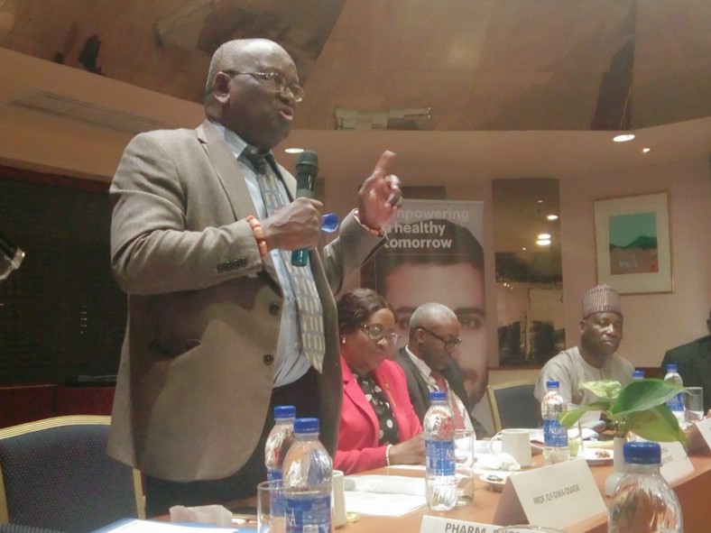 Prof. Frank Giwa-Osagie at the Dissemination of “Clinical Experiences of Oxytocin Quality used by Healthcare Providers in Lagos State” research in Lagos. Photo credit: Nigeria Health Watch