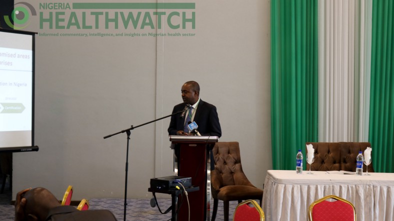Dr. Pascal Mkanda presented findings and recommendations at the 34th meeting of the ERC in Abuja. Photo credit: Nigeria Health Watch