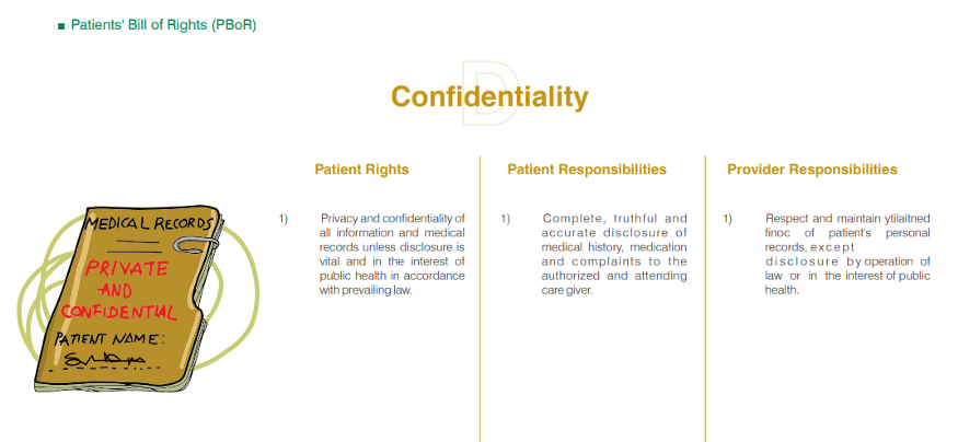 According to the PBoR, the patient has the right to privacy, and confidentiality of medical records. Image source: cpc.gov.ng