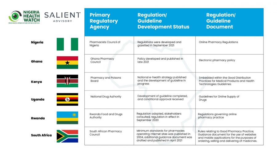At least two countries — South Africa and Rwanda — have implemented regulations to monitor the activities of online pharmacies, and regulators in four key countries confirm that they are currently under development. Ghana developed and recently published an electronic pharmacy policy and guideline. Kenya and Uganda have also developed guidelines for online pharmacies that are anchored to existing laws.