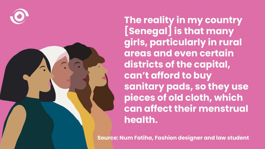 Num Fatiha, a 20-year-old fashion designer and law student at the African Institute of Management (Institut Africain de Management) in Dakar, Senegal, said she didn’t have any problem accessing menstrual hygiene products during lockdowns due to the pandemic. She noted, however, that this was not true for many young girls in her country.