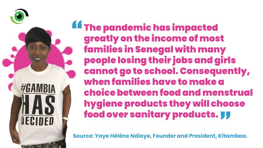 Sitting in a cafe in the bustling city of Nairobi, the Kenyan capital, Yaye Héléne Ndiaye read a story on her phone about the experiences of menstruating girls and women in Senegal. “When I read the article, I remembered how difficult it was for me to manage my menstruation especially in school while growing up. I was also sad to know that many girls don’t have access to sanitary pads, which made me wonder how difficult it would be for them to manage their menstruation,” Ndiaye, a young Senegalese social entrepreneur, recalled.
