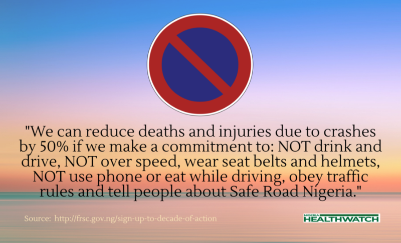 There is hardly anyone in Nigeria who does not have a personal tale of road crashes to tell. In 2007, my mother died due to complications of a head injury sustained from an ‘‘okada” (commercial motorcycle) crash. It was a painful and an avoidable death. A report by the CLEEN Foundation showed that in 2013, 47% of road crashes in Nigeria were due to okadas. Many okada riders never receive any formal training to ride motorcycles, consistently disobey traffic rules and in large part have constituted themselves into a lawless community. Okada crashes are just a fraction of the hazards that road users face in Nigeria, as a visit to any emergency room will testify. Road safety then is a critical part of public health and ought to be taken seriously.