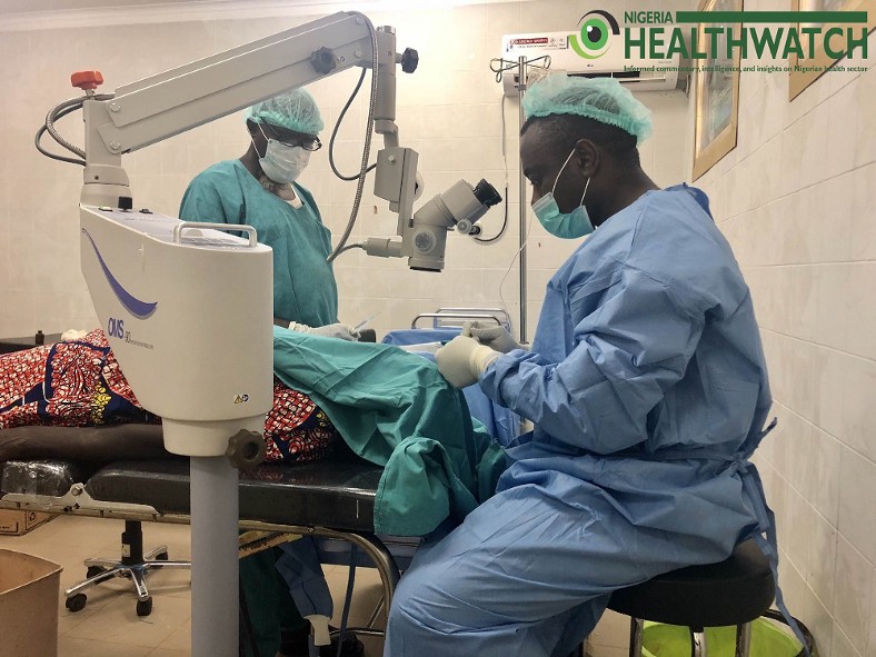 An eye surgeon from University College Hospital, Ibadan, performing a cataract surgery on a patient. Photo credit: Nigeria Health Watch
