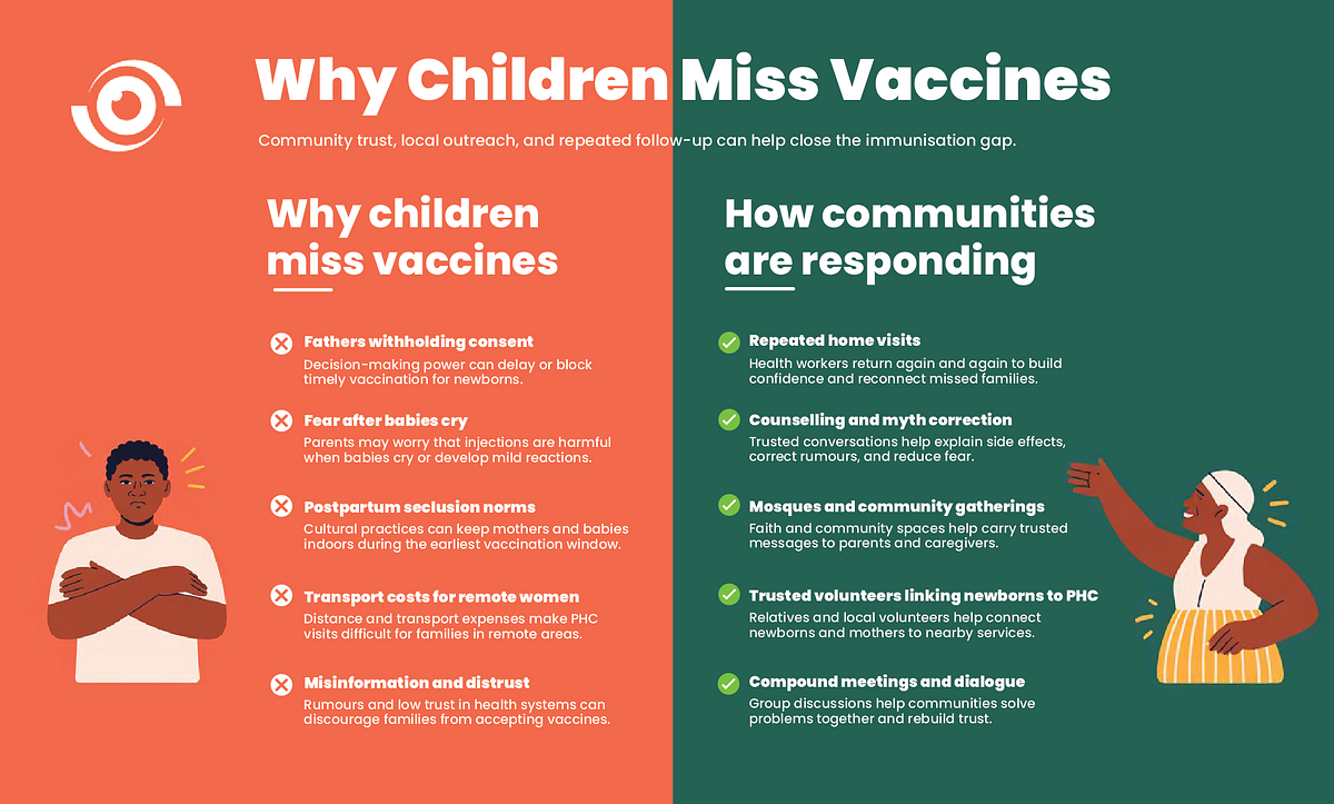 That work matters in a country where routine immunisation gaps remain wide. At the official launch of the 2024 Nigeria Demographic Health Survey (NDHS) Report, the Federal Government said 39% of children aged 12–23 months were fully vaccinated against basic antigens, 20% were fully vaccinated according to the national schedule, and 31% had received no vaccines at all. Published state summaries show deep disparities across the country, with Kebbi among the lowest-coverage states. Kebbi’s 2025 health operational plan presents different immunisation indicators, reporting 10.6% diphtheria–pertussis–tetanus-containing vaccine (DPT/Penta) coverage among children aged 12–23 months and 62.7% for routine immunisation coverage overall.